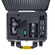 Gli scomparti in resina proteggono l’attrezzatura dagli urti e la pratica valigetta permette un agevole spostamento di camere e accessori correlati.